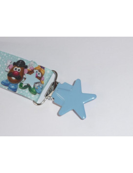 Essential, der Clip Schnuller / Dummy „FAMILY POTATO“ removable mit seiner blauen Sterne Klammer aus Metall, auf die Kleidung des Babys befestigt. S ystem Verschluss, der die Klemmen und Schrauben Schnullern variieren kann Ihren Wünschen Ausdruck bringen.