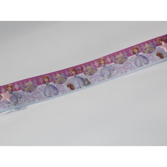 Esencial, el clip de chupete / ficticio "Princesa Sofía" extraíble con su abrazadera de metal del núcleo púrpura se fija a la ropa del bebé. sistema de cierre que permite la variación de las abrazaderas y sujetadores chupetes para expresar sus deseos.