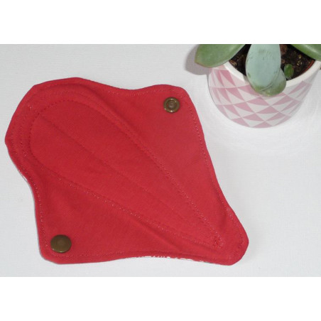 CARACTERÍSTICA: La compresa higiénica lavable (SHL) se fija alrededor de su ropa interior y se cierra por presión en las aletas. La parte sólida está en contacto con la piel. Las costuras interiores ayudan a dirigir el flujo hacia el centro. Después de su uso, se pliega sobre sí mismo para guardarlo discretamente. Es una alternativa para evitar todas las infecciones e irritaciones por hongos.