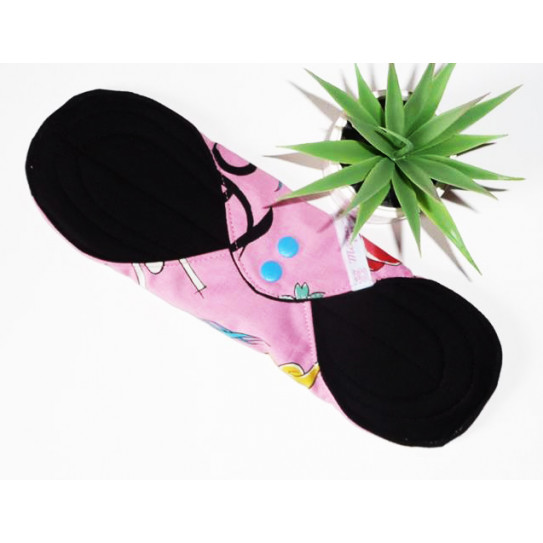CARACTERÍSTICA: La compresa higiénica lavable (SHL) se fija alrededor de su ropa interior y se cierra por presión en las aletas. La parte sólida está en contacto con la piel. Las costuras interiores ayudan a dirigir el flujo hacia el centro. Después de su uso, se pliega sobre sí mismo para guardarlo discretamente. Es una alternativa para evitar todas las infecciones e irritaciones por hongos.