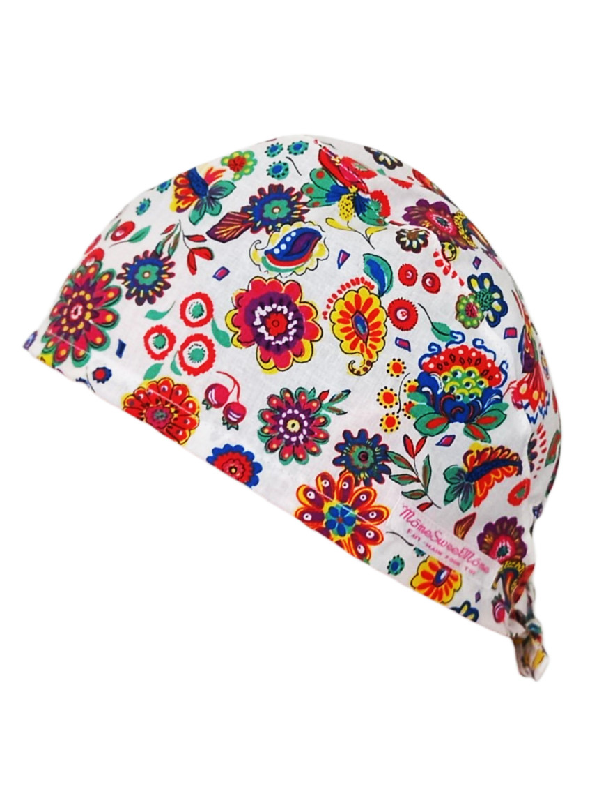 PARTICULARITE : Embellissez votre quotidien. Bandes à nouer et élastiqué à l'arrière, ce qui permet au calot de s'ajuster à toutes les formes et tailles de tête. Convient également pour les queues de cheval. Non doublé pour un effet plus aéré. Hormis une utilisation par le corps médical, il peut également être utilisé comme couvre-chef, en pâtisserie, en pharmacie, vétérinaire, anesthésiste, etc ...