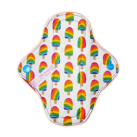 COMPOSITION : Tissu 100% coton imprimé (partie en contact avec la lingerie)/ Intérieur : noyau absorbant composé d'une épaisseur de 100% coton molleton épais/ 100% microfibre unie ultra absorbante Oeko-Tex (partie en contact avec la peau)/ Pression en résine.
