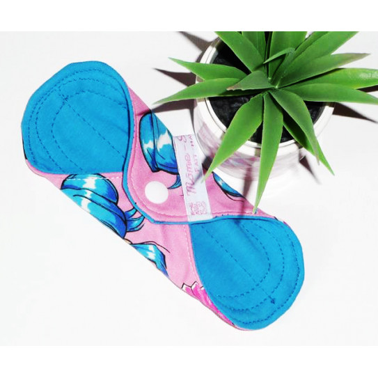COMPOSITION : Tissu 100% coton imprimé **Oeko-Tex (partie en contact avec la lingerie)/ Intérieur : noyau composé d'une épaisseur de **Zorb super-absorbant hypoallergénique / 100% jersey de bambou uni doux **Oeko-Tex (partie en contact avec la peau) + **PUL Oeko-Tex imperméable et respirant / Pression en résine Oeko-Tex.