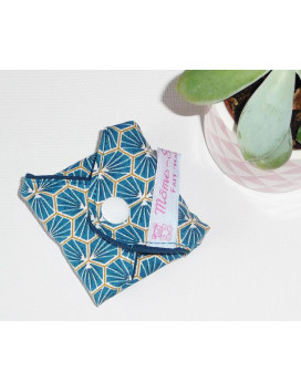 COMPOSITION : 100% coton imprimé (partie en contact avec la lingerie) / Intérieur : noyau absorbant composé d'1 épaisseur de coton molleton absorbant Oeko-Tex + ** PUL Oeko-Tex imperméable et respirant /100% jersey de coton uni bio (partie en contact avec la peau). Fermeture réglable : 2 pressions en résine Oeko-Tex
