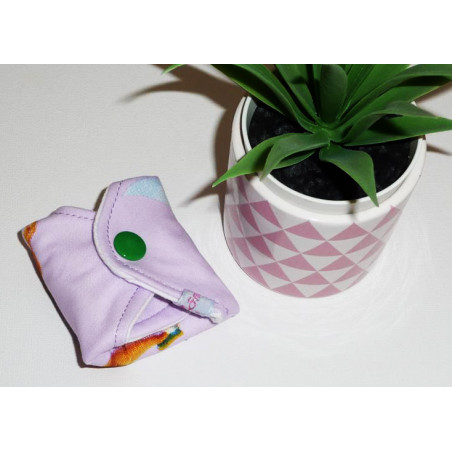 COMPOSITION : Tissu 100% coton imprimé Oeko-Tex (partie en contact avec la lingerie)/ Intérieur : noyau absorbant composé d'une épaisseur de 100% molleton/ 100% jersey de bambou uni doux Oeko-Tex (partie en contact avec la peau)/ **PUL Oeko-Tex imperméable et respirant/ Pression en résine Oeko-Tex.