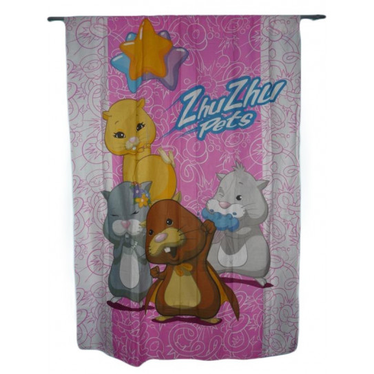 L' indispensable pour l'ornement d'une chambre d'enfant, très beau rideau rose et blanc à motif géant des " ZHU ZHU PETS "