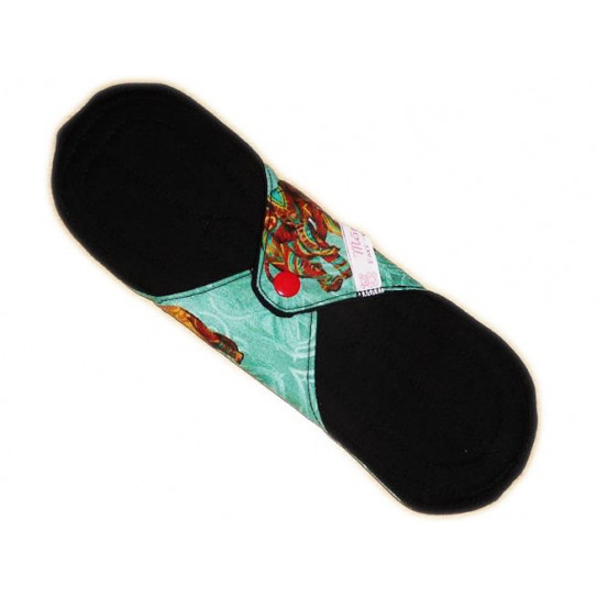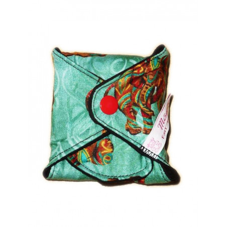 COMPOSITION : 100% coton imprimé (partie en contact avec la lingerie)/ Intérieur : noyau absorbant composé de deux épaisseurs de 100% coton molleton absorbant + ** PUL Oeko-Tex imperméable et respirant/ Tissu jersey doux 100% coton uni (partie en contact avec la peau)/ Fermeture réglable : pression en résine
