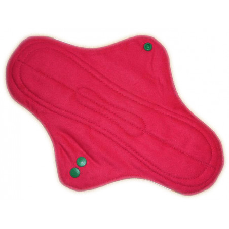 PARTICULARITE : La serviette hygiénique lavable (SHL) se fixe autour de votre sous-vêtement et se ferme par pression aux ailettes. La partie unie est en contact avec la peau. Les coutures intérieures permettent de diriger le flux au centre. Après utilisation, elle se plie sur elle-même pour être rangée discrètement. Elle est une alternative pour éviter toutes mycoses et irritations.