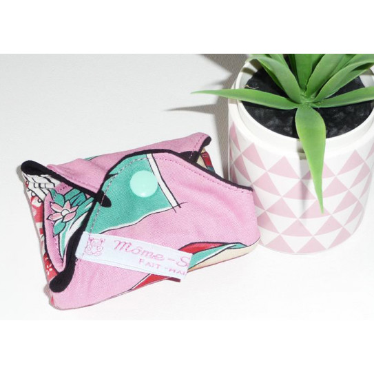 COMPOSITION : 100% coton imprimé **Oeko-Tex (partie en contact avec la lingerie)/ Intérieur : noyau composé d'une épaisseur de **Zorb super-absorbant hypoallergénique / 100% jersey de bambou uni doux **Oeko-Tex (partie en contact avec la peau) + **PUL Oeko-Tex imperméable et respirant / Pression en résine Oeko-Tex.