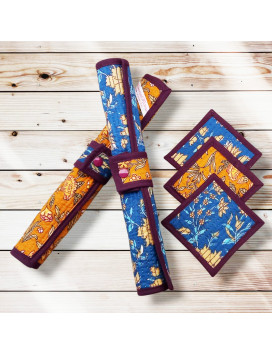 Perfect for a unique tablescape, whether you choose a uniform or a mismatched design, this reversible quilted fabric set with colorful patterns will add a festive touch and personality to your meals, making them unique. Made from durable fabrics, they are washable.