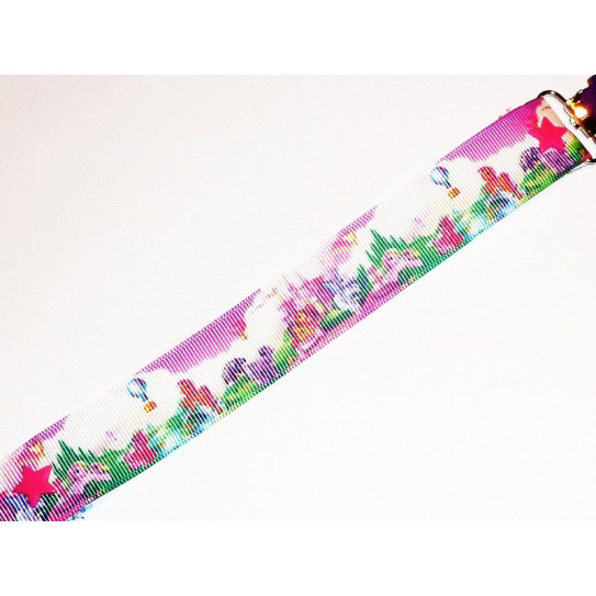 MATERIAL : Grosgrain ribbon "My Little Pony" / Clamp: violet metal star / Pressures: resin fuchsia hearts