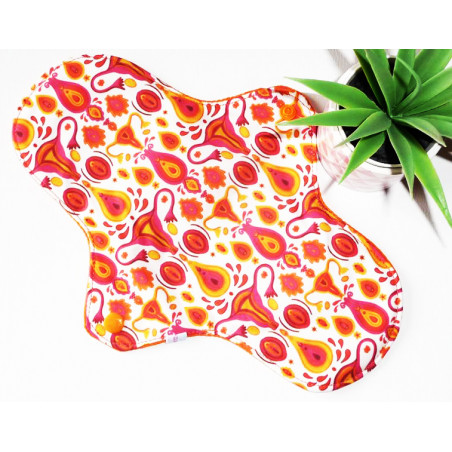 FEATURE: The washable sanitary napkin (SHL) is fixed around your underwear and closes by pressure at the fins. The solid part is in contact with the skin. Interior seams help direct flow to the center. After use, it folds up on itself to be discreetly stored. It is an alternative to avoid all fungal infections and irritations.