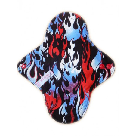COMPOSITION: Fabric 100% cotton printed (part in contact with lingerie) / Inside: absorbent core made of 100% thick organic cotton / soft jersey fabric 100% plain cotton (part in contact with the skin) / Resin pressure.