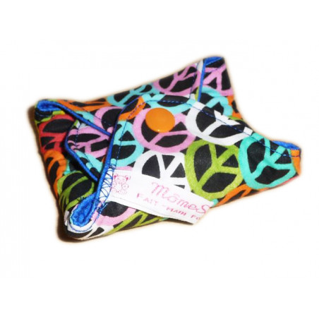 COMPOSITION : 100% printed cotton (part in contact with lingerie) / Interior: absorbent core composed of two thicknesses of 100% absorbent cotton fleece + ** PUL Oeko-Tex waterproof and breathable / 100% Oeko-Tex ultra-absorbent plain microfiber (part in contact with the skin) / Adjustable closure: resin pressure