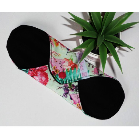 FEATURE: The washable sanitary napkin (SHL) is fixed around your underwear and closes by pressure at the fins. The solid part is in contact with the skin. Interior seams help direct flow to the center. After use, it folds up on itself to be discreetly stored. It is an alternative to avoid all fungal infections and irritations.