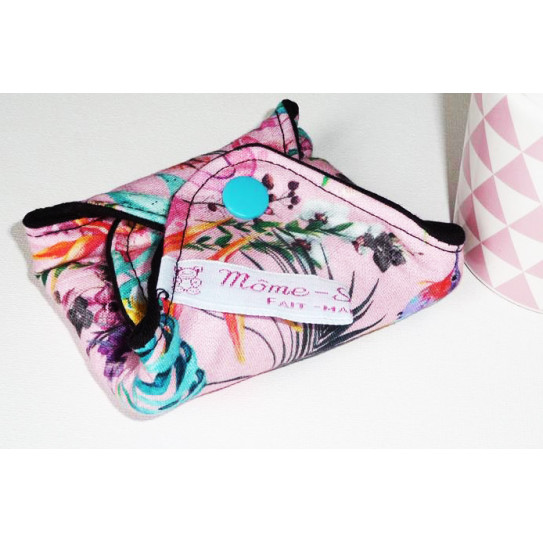COMPOSITION: 100% printed cotton (part in contact with the lingerie) / Interior: absorbent core composed of 2 layers of absorbent cotton fleece Oeko-Tex + ** PUL Oeko-Tex waterproof and breathable / 100% plain bamboo jersey Oeko-Tex (part in contact with the skin). Adjustable closure: Oeko-Tex resin pressures