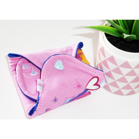 COMPOSITION: 100% printed cotton (part in contact with the lingerie) / Interior: absorbent core composed of 2 layers of absorbent cotton fleece Oeko-Tex + ** PUL Oeko-Tex waterproof and breathable / 100% plain bamboo jersey Oeko-Tex (part in contact with the skin). Adjustable closure: Oeko-Tex resin pressures