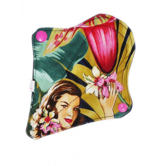 COMPOSITION: 100% printed cotton fabric (part in contact with lingerie) / Interior: absorbent core composed of a thickness of 100% organic bamboo fleece / 100% cotton plain jersey Oeko-Tex (part in contact with the skin) / Pressure in Oeko-Tex resin.