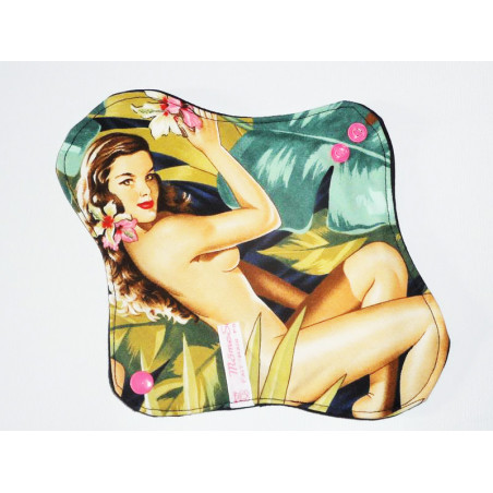 COMPOSIZIONE: 100% cotone stampato (parte a contatto con la biancheria) / Interno: anima assorbente composta da 1 strato di pile di cotone assorbente Oeko-Tex + ** PUL Oeko-Tex impermeabile e traspirante / 100% jersey di cotone organico (parte a contatto con la pelle). Chiusura regolabile: 2 pressioni di resina Oeko-Tex
