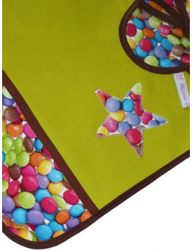 Materiale: 100% cioccolato rivestite di zucchero tela cerata stampati e mela verde / Bias: 100% cotone cioccolato.