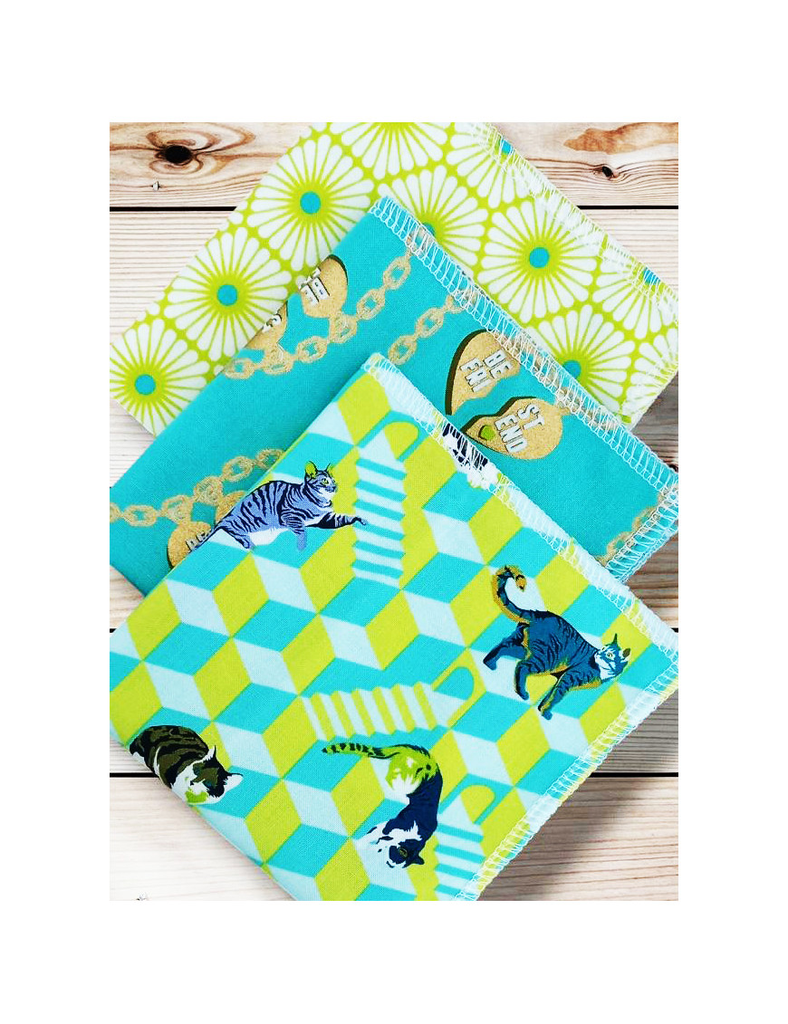 PARTICOLARITÀ : Pratici, scivolano facilmente in tasca, in borsa, nella pochette, ecc. Realizzati con tessuti morbidi, non irritano il naso e saranno sempre più morbidi dopo ogni lavaggio. Osa essere eco-responsabile e sostituisci i tuoi fazzoletti di carta con fazzoletti di stoffa. Il pianeta ti ricompenserà.