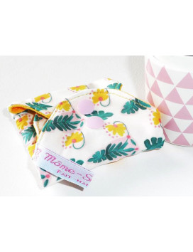 COMPOSIZIONE: Tessuto 100% cotone stampato **Oeko-Tex (parte a contatto con la lingerie) / Interno: anima composta da uno spessore di **Zorb anallergico super assorbente / Jersey 100% morbido bambù tinta unita **Oeko-Tex (parte in contatto con la pelle) + **Oeko-Tex impermeabile e traspirante PUL / pressione della resina Oeko-Tex.
