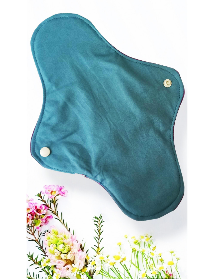 CARATTERISTICHE SPECIALI : L'assorbente lavabile (WS) si indossa intorno alla biancheria intima e si chiude con bottoni automatici sulle alette. La parte liscia è a contatto con la pelle. Le cuciture interne indirizzano il flusso verso il centro. Dopo l'uso, si ripiega su se stesso per riporlo in modo discreto. È un'alternativa per prevenire infezioni fungine e irritazioni.