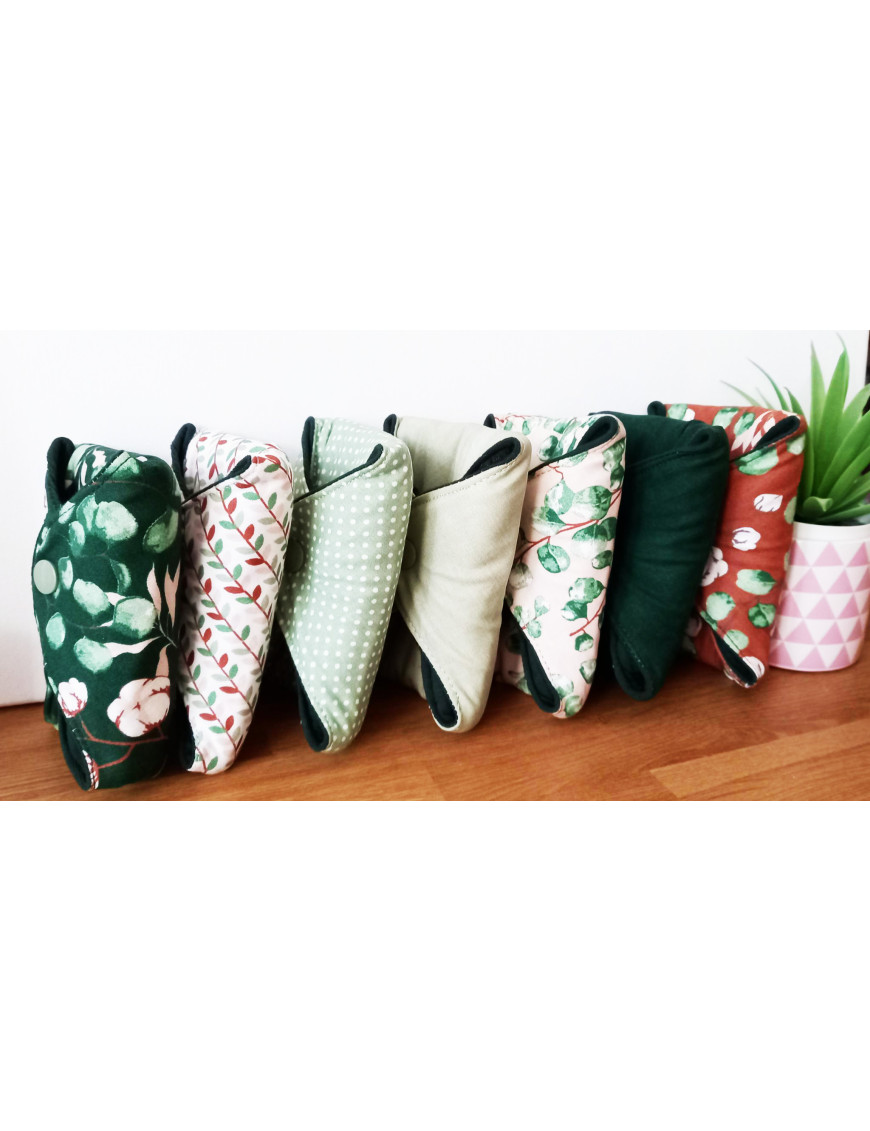 CARATTERISTICHE SPECIALI : L'assorbente lavabile (WS) si indossa intorno alla biancheria intima e si chiude con bottoni automatici sulle alette. La parte liscia è a contatto con la pelle. Le cuciture interne indirizzano il flusso verso il centro. Dopo l'uso, si ripiega su se stesso per riporlo in modo discreto. È un'alternativa per prevenire infezioni fungine e irritazioni.