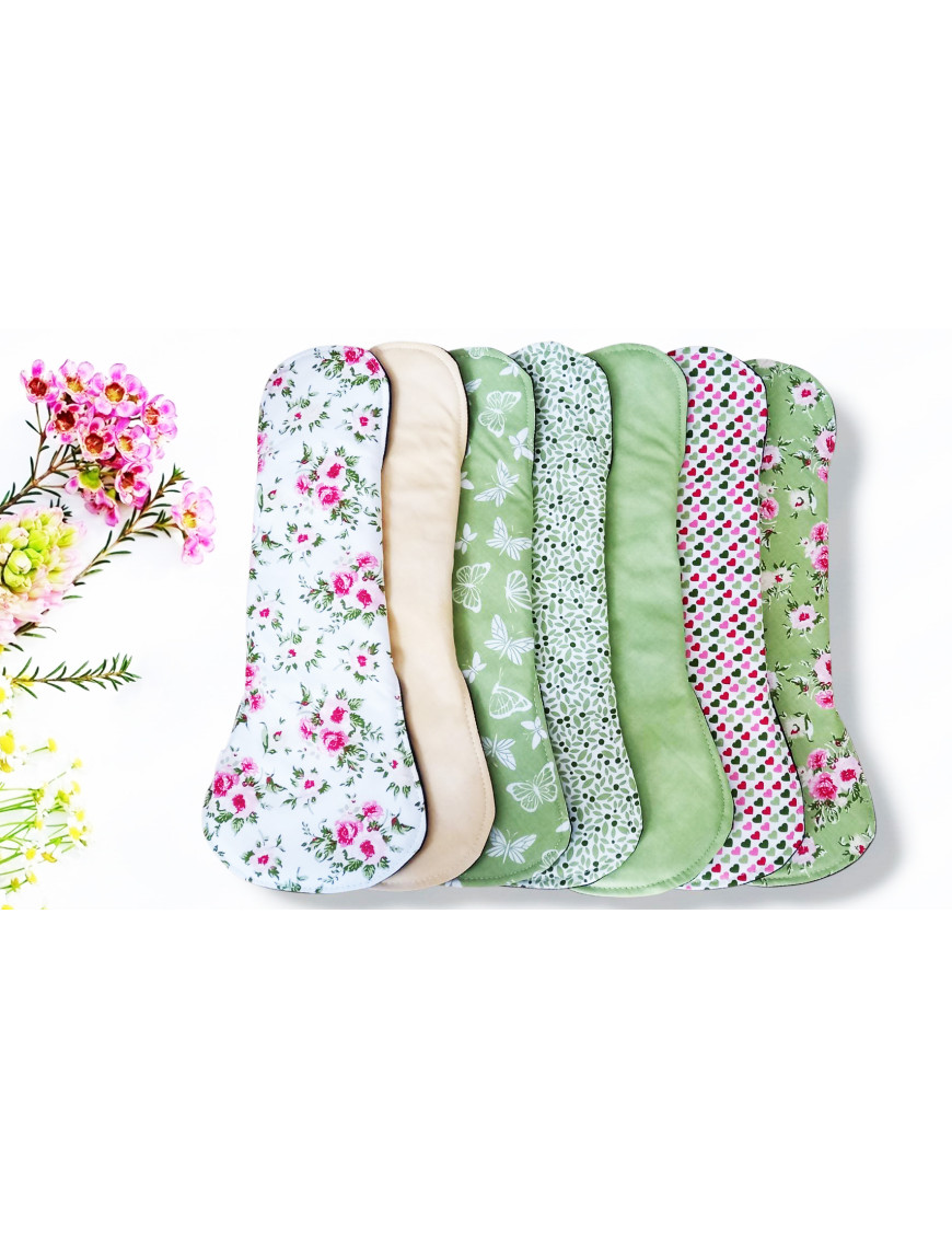 CARATTERISTICHE SPECIALI : L'assorbente lavabile (WS) si indossa intorno alla biancheria intima e si chiude con bottoni automatici sulle alette. La parte liscia è a contatto con la pelle. Le cuciture interne indirizzano il flusso verso il centro. Dopo l'uso, si ripiega su se stesso per riporlo in modo discreto. È un'alternativa per prevenire infezioni fungine e irritazioni.