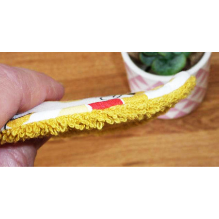 SAMENSTELLING: 100% katoen bedrukte Oeko-Tex stof (deels in contact met lingerie) / Binnenkant: absorberende kern samengesteld uit 1 laag 100% Oeko-Tex badstof katoen / Buitenkant: 1 laag 100% zachte Oeko-Tex katoenen badstof (deel in contact met de huid)