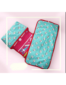 Schattige kleine luiertas met zijn gewatteerde "BLOESEM" matras die in de tas kan worden opgeborgen. Perfect en praktisch voor het verschonen van baby tijdens het reizen, voor de kinderkamer. Genoeg om een paar luiers, crème, doekjes, enz. in op te bergen. Zak met rits om de benodigdheden van de baby op te bergen.