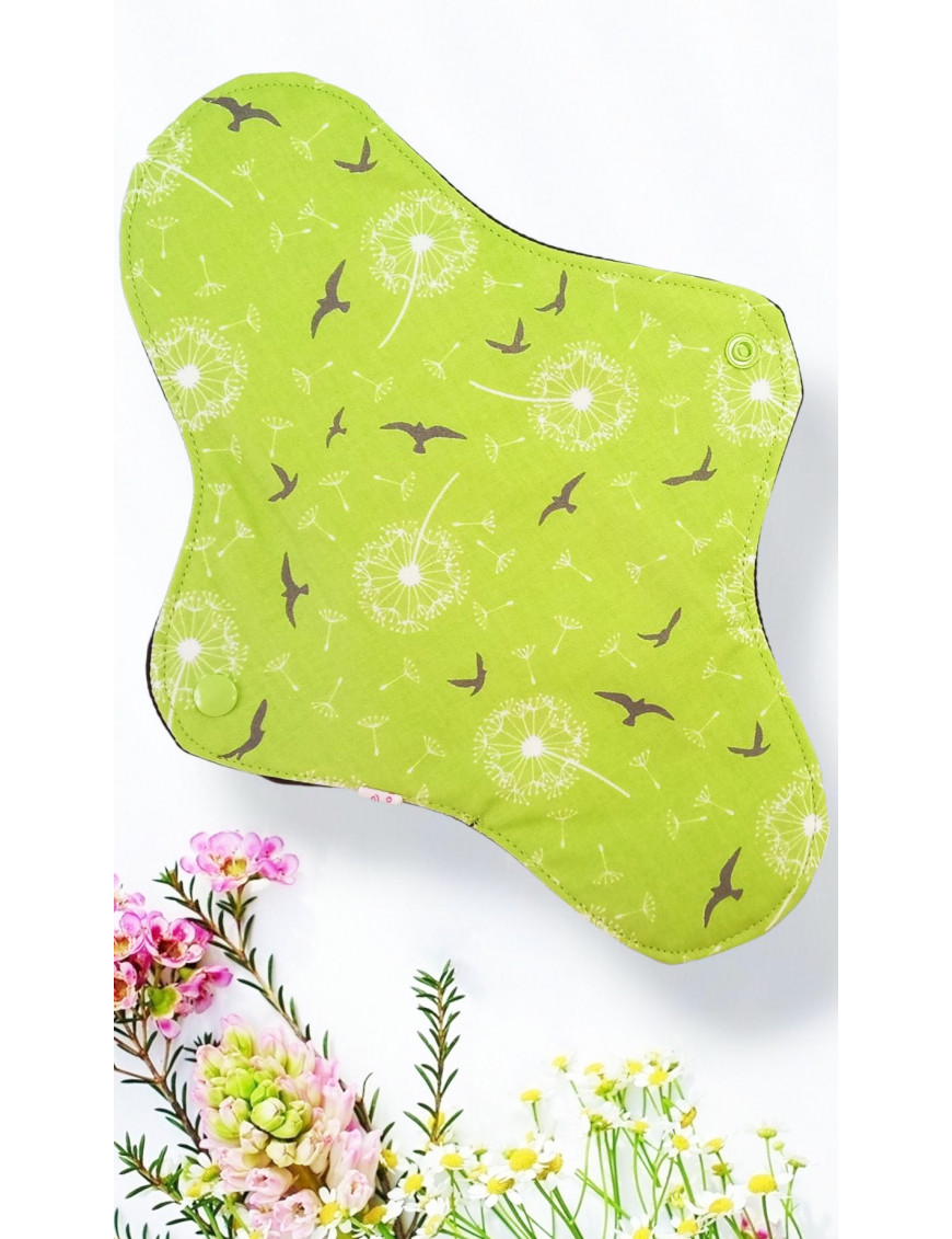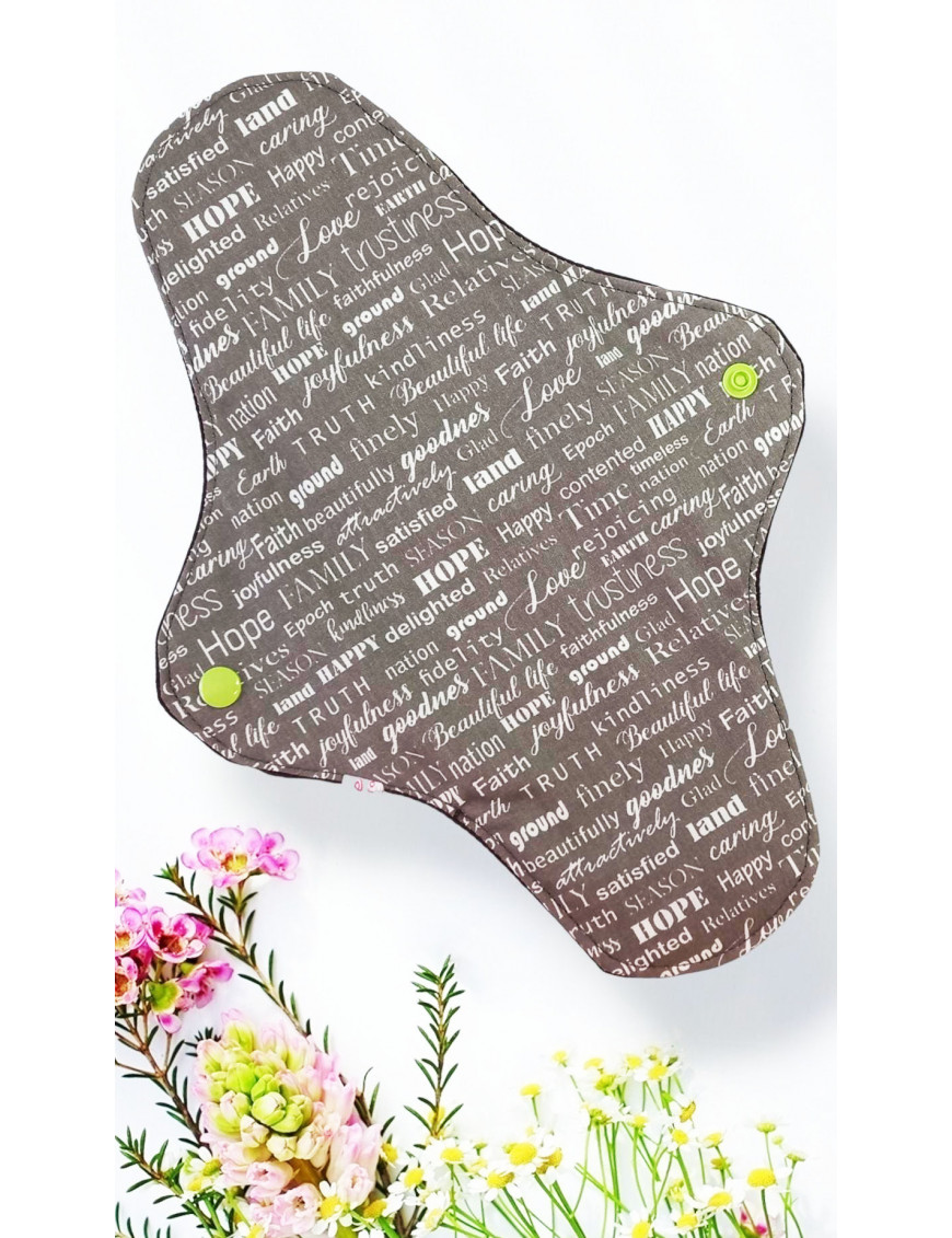 BIJZONDERE KENMERKEN : Het wasbare maandverband (WS) wordt om je ondergoed bevestigd en sluit met drukknopen bij de flappen. Het gladde gedeelte is in contact met de huid. De naden aan de binnenkant leiden de vloeistof naar het midden. Na gebruik vouwt het zich op voor discrete opslag. Het is een alternatief om schimmelinfecties en irritaties te voorkomen.