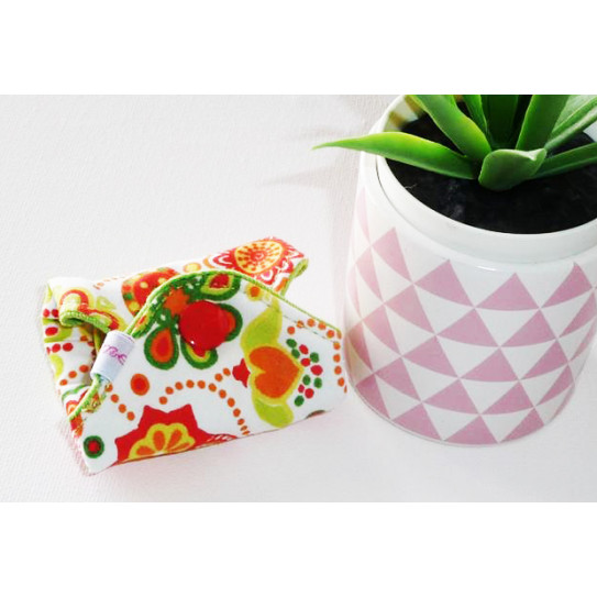 SAMENSTELLING: 100% katoen bedrukt Oeko-Tex (gedeeltelijk in contact met lingerie) / Binnenkant: absorberende kern samengesteld uit een dikte van 100% dikke katoenen fleece / 100% Oeko-Tex zachte effen katoenen jersey (deel in contact met de huid) / **PUL Oeko-Tex waterdicht en ademend/ druk in hars Oeko-Tex.