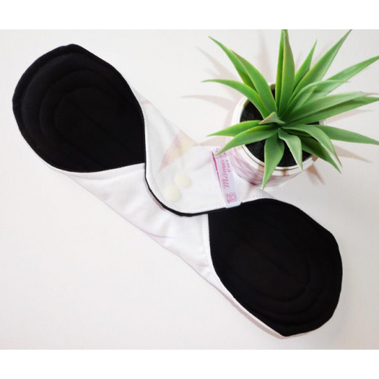 EIGENSCHAP: Het wasbare maandverband (SHL) wordt rond je ondergoed bevestigd en sluit door druk op de vinnen. Het vaste deel is in contact met de huid. Naden aan de binnenkant helpen de stroom naar het midden te leiden. Na gebruik vouwt hij zichzelf op om discreet te worden opgeborgen. Het is een alternatief om alle schimmelinfecties en irritaties te voorkomen.